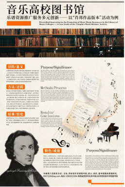 2025年9月25日至27日,由教育部高等学校图书情报工作指导委员会、CALIS管理中心、上海交通大学图书馆、武汉大学图书馆主办的第十八届图书馆管理与服务创新论坛(CFLMS)在吉林延边举办。我校图书馆馆员王怡的短论文《音乐高校图书馆乐谱资源推广服务多元创新—以“肖邦作品版本”活动为例》被收录本届论坛论文集,其海报在全国34个海报评比中,获得第9名。