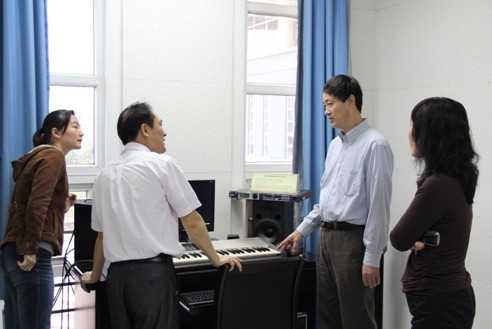 在温馆长和叶副馆长的讲解中,刘荣弟馆长逐一参观了星海音乐学院图书馆的各个部门,在该馆的试听部,刘馆长饶有兴趣地参观了该馆的MIDI制作系统,并仔细询问了该系统的硬件配置、使用情况和配套设施等问题。