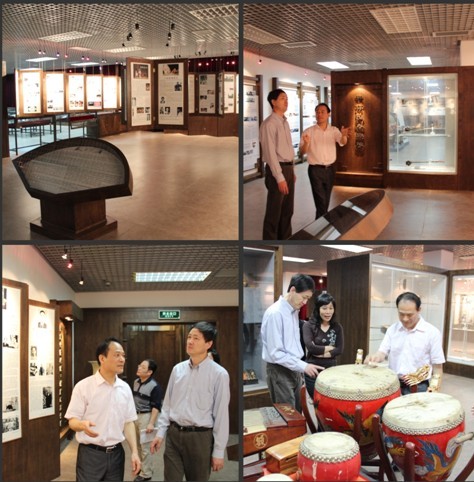 最后,刘馆长一行参观了该馆的特色展——《岭南音乐文化展览馆》。该展馆以星海图书馆馆藏特色资源为基础,广泛收集与岭南音乐文化相关的乐谱、图片和乐器,将二者综合荟萃而成