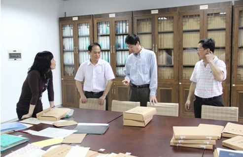在该馆特藏室,温馆长为刘馆长一行展示了赵宋光先生的捐赠文献。这批文献系赵宋光先生80余年的文献总汇,举凡其生平文章、乐谱、手稿、图谱和个人珍藏千余种,是其一生学术研究与生活点滴之记录。刘馆长认真听取了该部门负责人的介绍,并对如何保护和利用特藏文献的问题进行了交流。